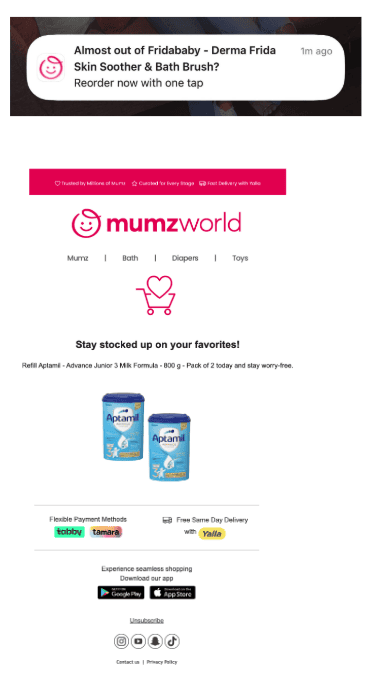 Before Replenit, Mumzworld’s CRM programs were strong yet largely segment-based and campaign-driven, effective for scale, but not truly individualized for each family’s needs.