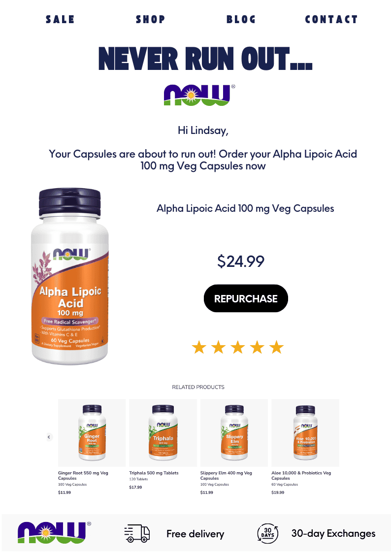If customers don’t interact with the first email, consider sending a follow-up closer to the date they’re expected to run out of the product.